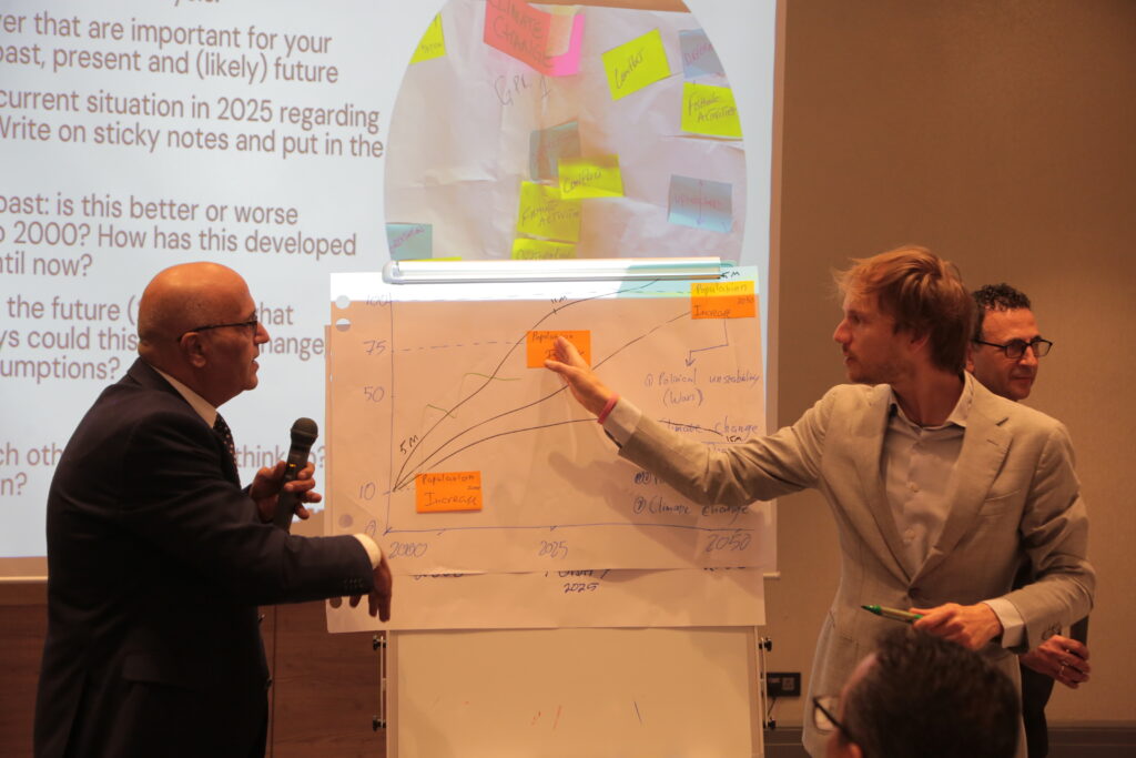 Representatives from more than ten ministries came together – from Education and Finance to Energy, Water, Industry, Transport, Crisis Management and beyond — to explore how foresight and scenario thinking can be used to improve policy making in turbulent and uncertain times. In collaboration with the Arab Network for Agricultural Development, the event also welcomed representatives from Tunisia, Sudan, Lebanon, Somalia, and Yemen – adding valuable regional insights.