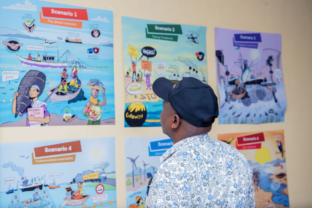 - ‘Gasping blue economy but others rise’, is a future where the fisheries sector remains marginal for communities, but other sectors are developed that also contribute to inclusive development and environmental sustainability